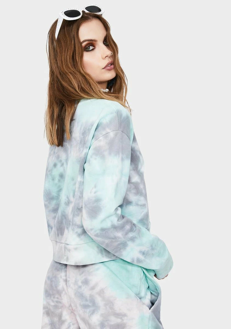 for keepinΓ’ΒΒ it real. This tie dye graphic hoodie sweatshirt has a cropped fit and the brand logo printed on the front.