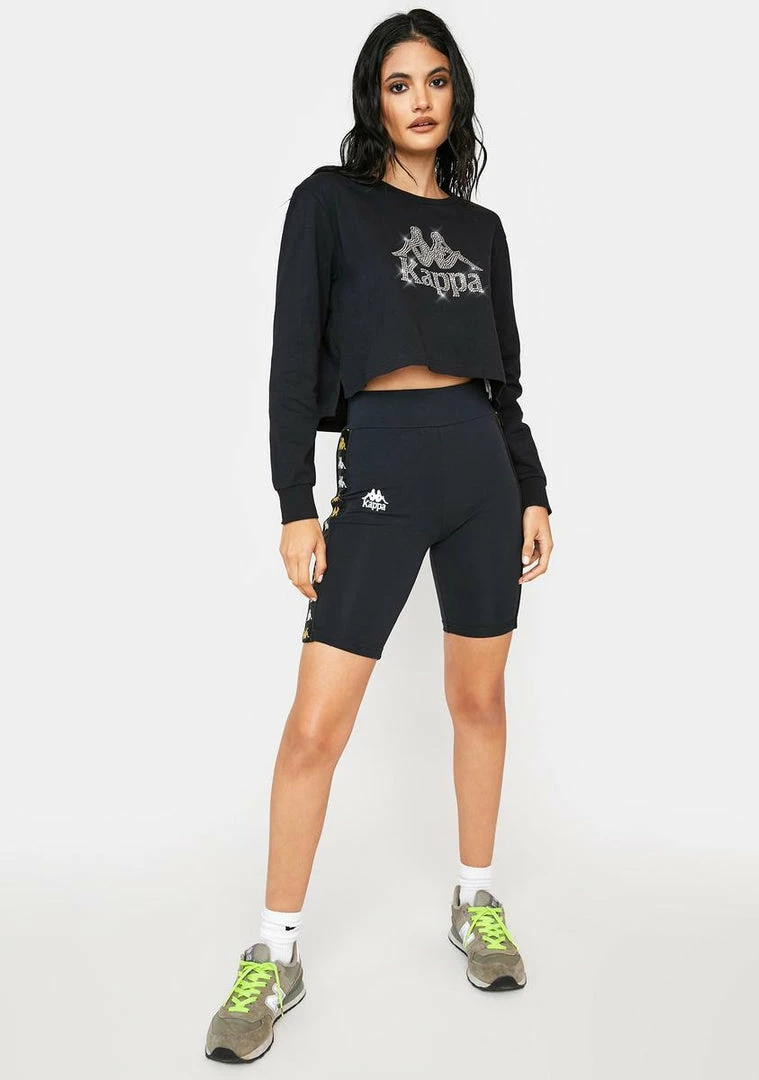 has a relaxed fit, a rhinestone studded Kappa logo across the chest, and a cropped hem.
