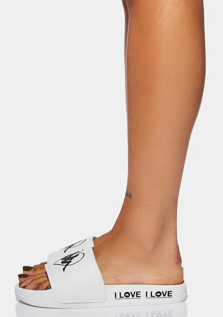 feature a PVC construction, thick straps across the feet with debossed Omini Kappa logos, cushioned footbeds, and a slip on fit.