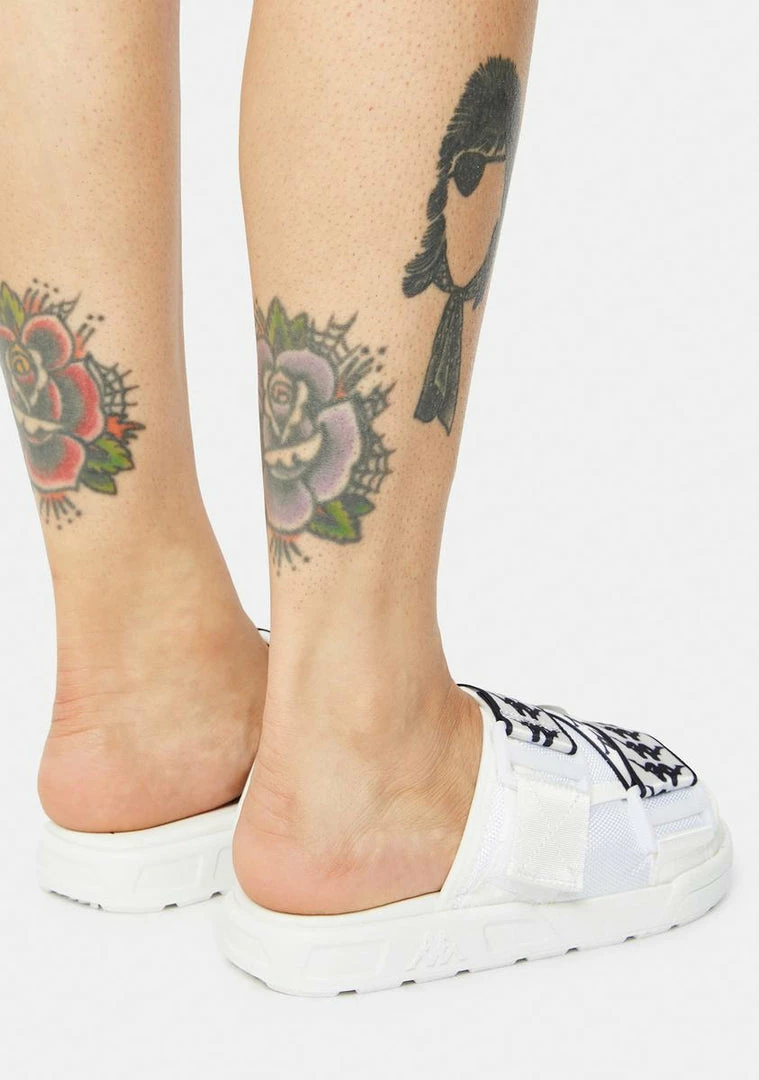will have ya takin’ over the scene in comfort. You’re comfy cool in these reppin’ slides that have a sikk logo strap, logo embossed footbeds N’ platform treaded soles.